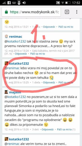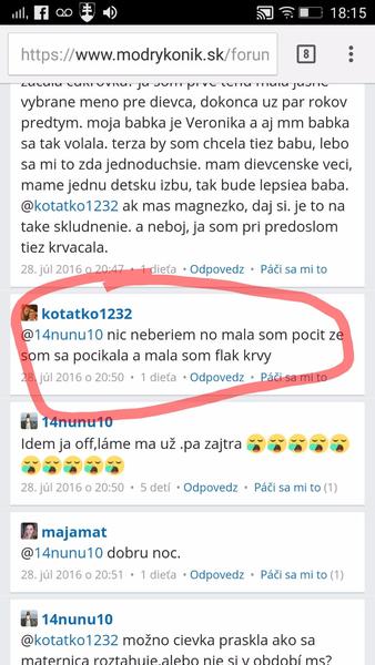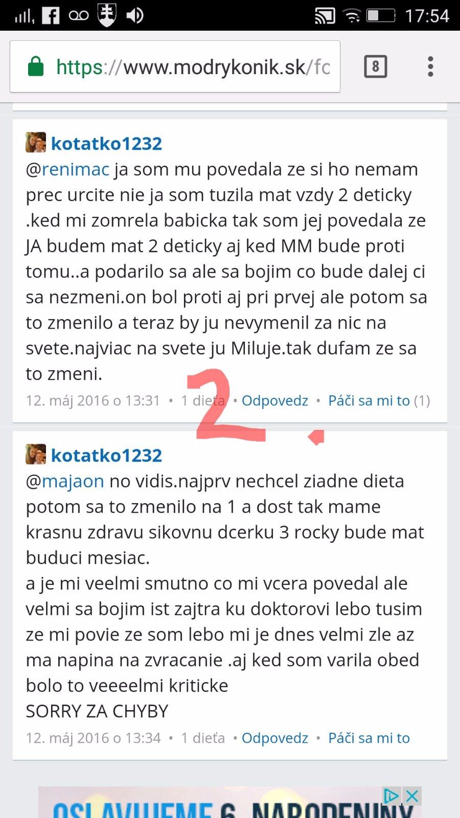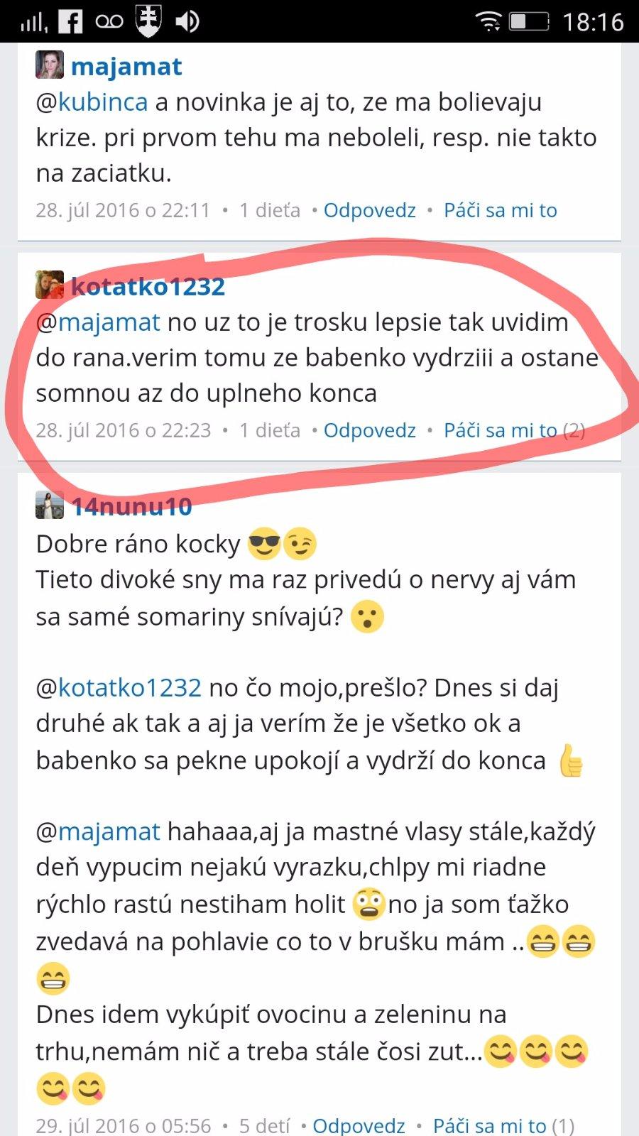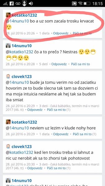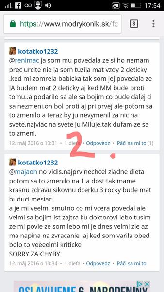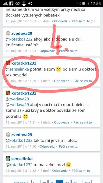 @kotatko1232 takže v lete minulého roka. Tehu, ktoré si nemala ani potvrdené od lekára. A 2 mesiace predtým nič? Keď ťa tvoj drahý div že na potrat neposlal? Si myslím že každá jedna z nás si pamata presne, kedy o dieťatko prišla. A myslím že už stačilo a je najvyšší čas nechať tieto tvoje rozprávky keď si bola skoro každý mesiac tehotná a následne potratila, malým deťom. Citim sa tak zle aj za ostatne,ktore ti pomaly až do poslednej chvíle verili a prezivali to s tebou.To my to už veriť nebudeme. Nech sa páči, tvoja STORY c.1 z mája 2016: