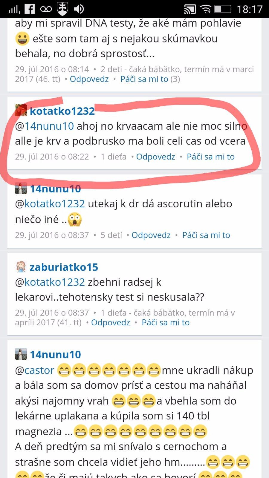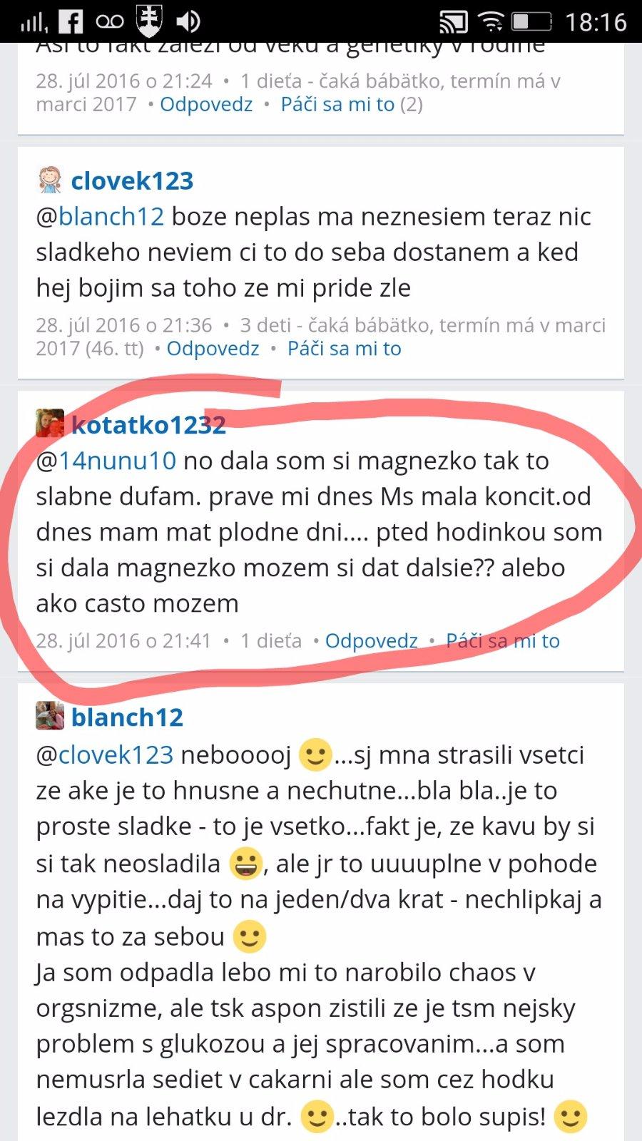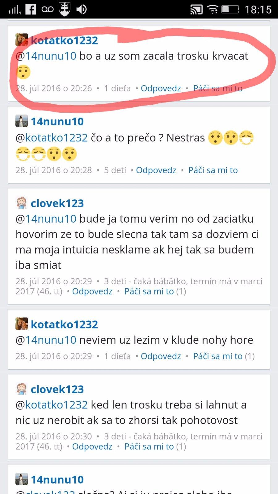 @kotatko1232 takže v lete minulého roka. Tehu, ktoré si nemala ani potvrdené od lekára. A 2 mesiace predtým nič? Keď ťa tvoj drahý div že na potrat neposlal? Si myslím že každá jedna z nás si pamata presne, kedy o dieťatko prišla. A myslím že už stačilo a je najvyšší čas nechať tieto tvoje rozprávky keď si bola skoro každý mesiac tehotná a následne potratila, malým deťom. Citim sa tak zle aj za ostatne,ktore ti pomaly až do poslednej chvíle verili a prezivali to s tebou.To my to už veriť nebudeme. Nech sa páči, tvoja STORY c.1 z mája 2016: