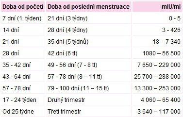 @peta1223 neviem, ci je to dobre, mne nikdy Hcg nemerali, ani krv nebrali, aspon o tom neviem ani pri jednom tehu...Ak brali, tak vysledky len povedali, ze su v poriadku, no hodnoty mna nikdy nezaujimali ziadne 😉...Tu je tabulka z netu, myslim, ze mas Hcg v norme - podla toho, co Ty pises, si asi v 4-5tt, ci mylim sa?...Uvidis, ako bude stupat...Kedy mas najblizsi odber na Hcg?