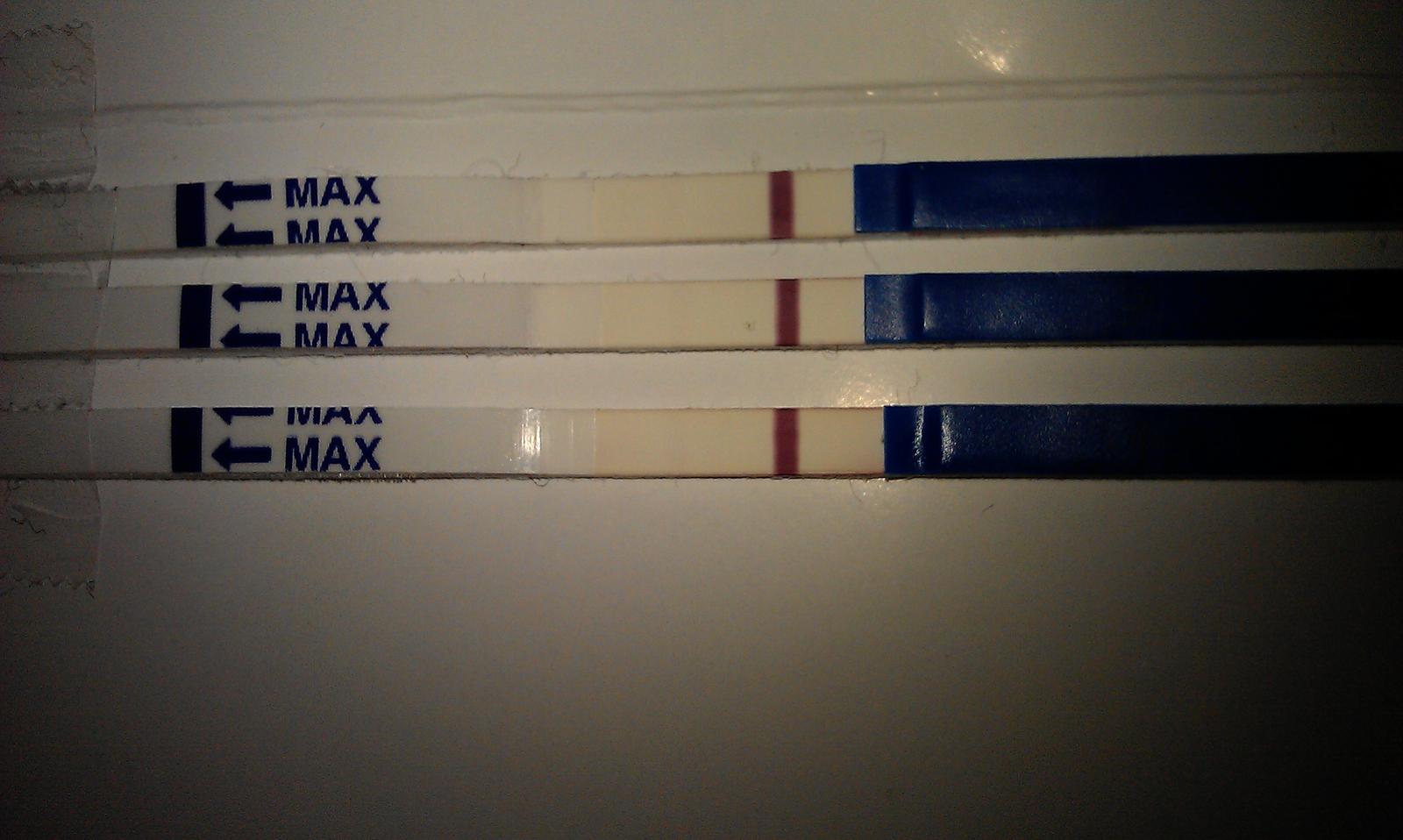 @zuzanka2211 no dnešná vypada takto len sa mi nepodarilo z rameno prvého moču tak nie je velmi výrazná lebo mohla byt uz aj tmavsia od včerajšej.. No veď uvidím ze co sa bude diať; dnes mam 28dc a mal by prísť menzes dnes,zajtra tak dúfam ze nepríde... Ale brucho mam nafuknute riadne, aj prsia citlivé, v noci tie vajecniky cítim.... Ak nepríde tento a budúci týždeň tak sa objednam k dr.