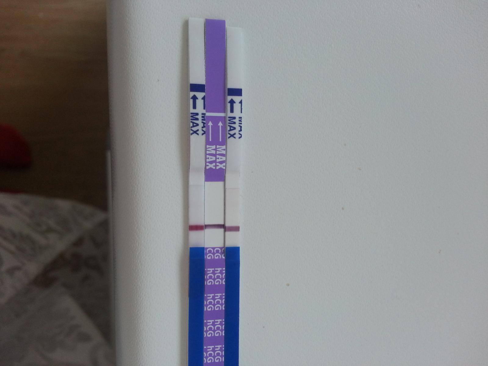 @chmurkaxy ahojte baby. Vcera som si spravila mamatest a bol negativny. Dnes pepino a trosku silnejsia ciarka. Pripajam foto vsetkych troch a potom iba pepino z predvcera a dnes. Dnes som 29dc takze iba den meska. O par hodin budem mat vysledky od lekara...