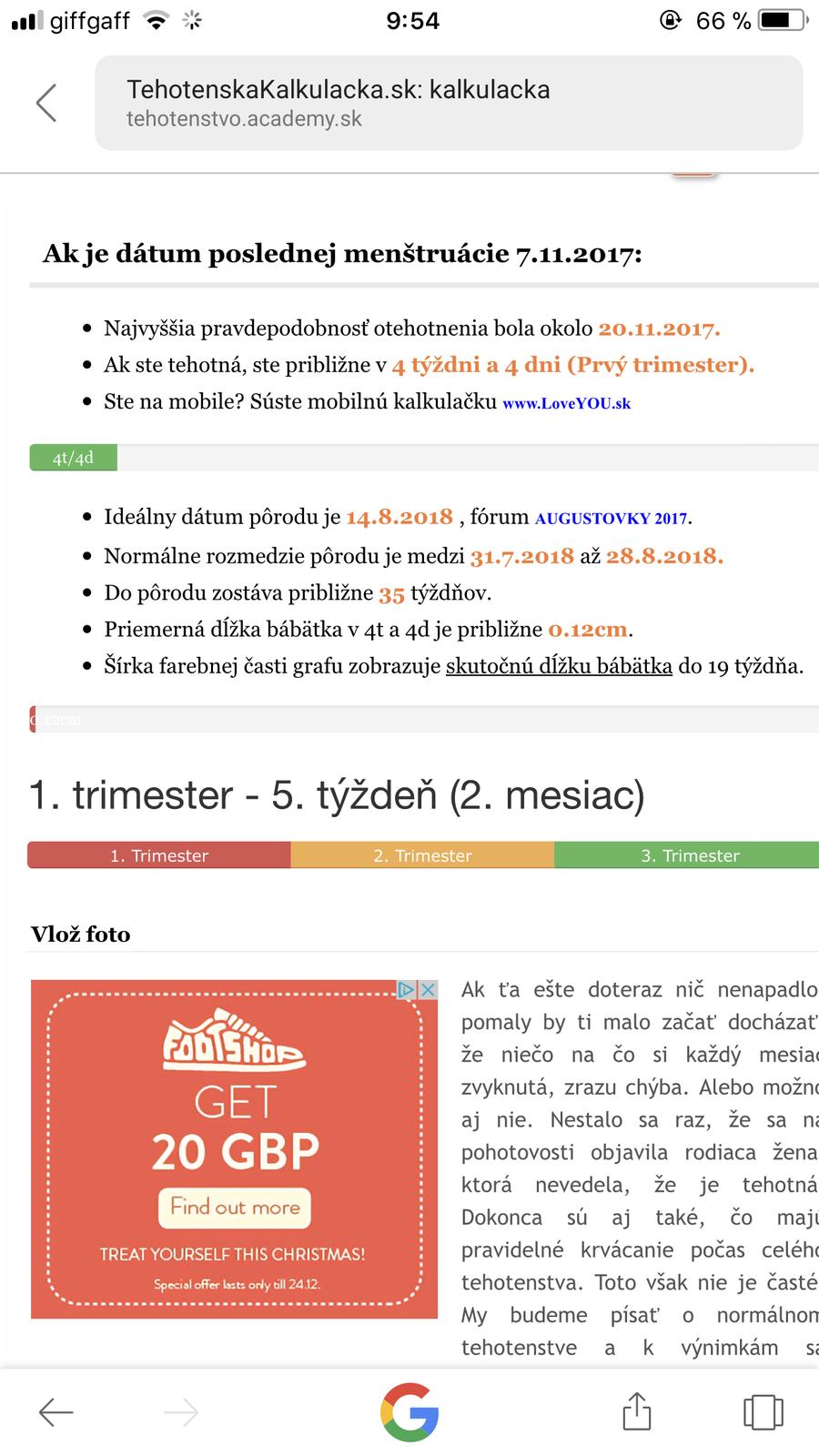 Mne totiz kazdy hovori inac .. jedna slecna alebo pani tuna podla poslednej menstruaciie povedala ze som len 3 tyzdni moj menstruacny kalendar v telefone s poslenej ms vypocital ze som v 5 Tyzdni online tehotenske kalkulacky mi vypocitali ze 4 tyzdne potom som