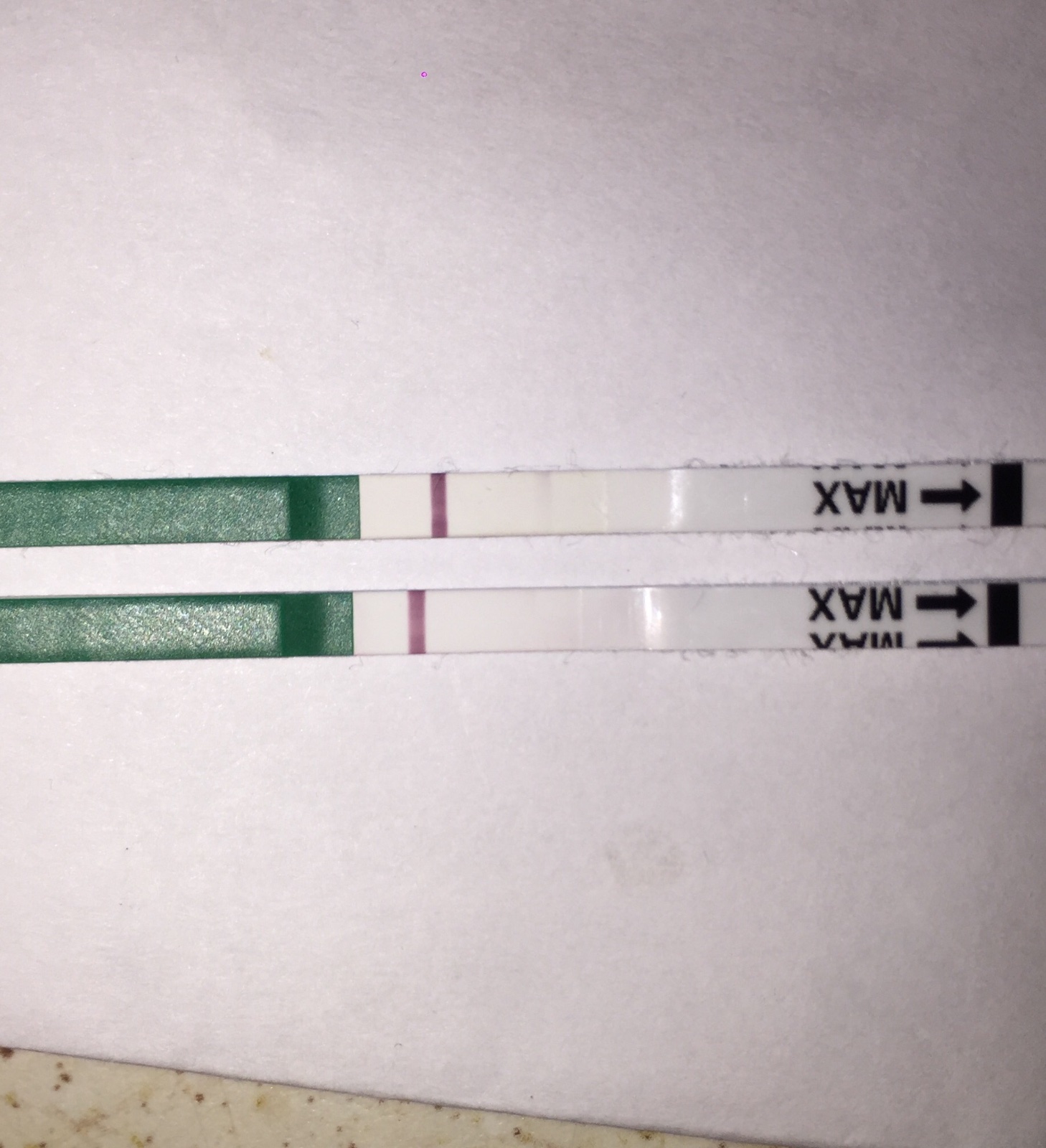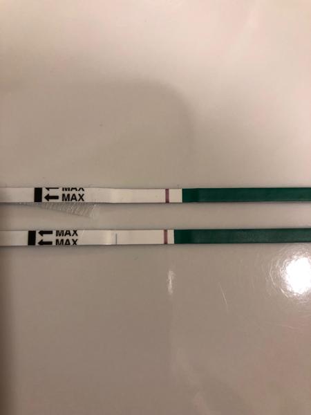 Tie testy sú negatívne podľa mňa 😟, je na nich iba rozpité farbivo, zvykne sa to stať, dôležité je test nechať voľne položený hneď po namoceni. Lebo čím viac sa ešte mokry nakláňa a natáča, tak sa test rozpije.