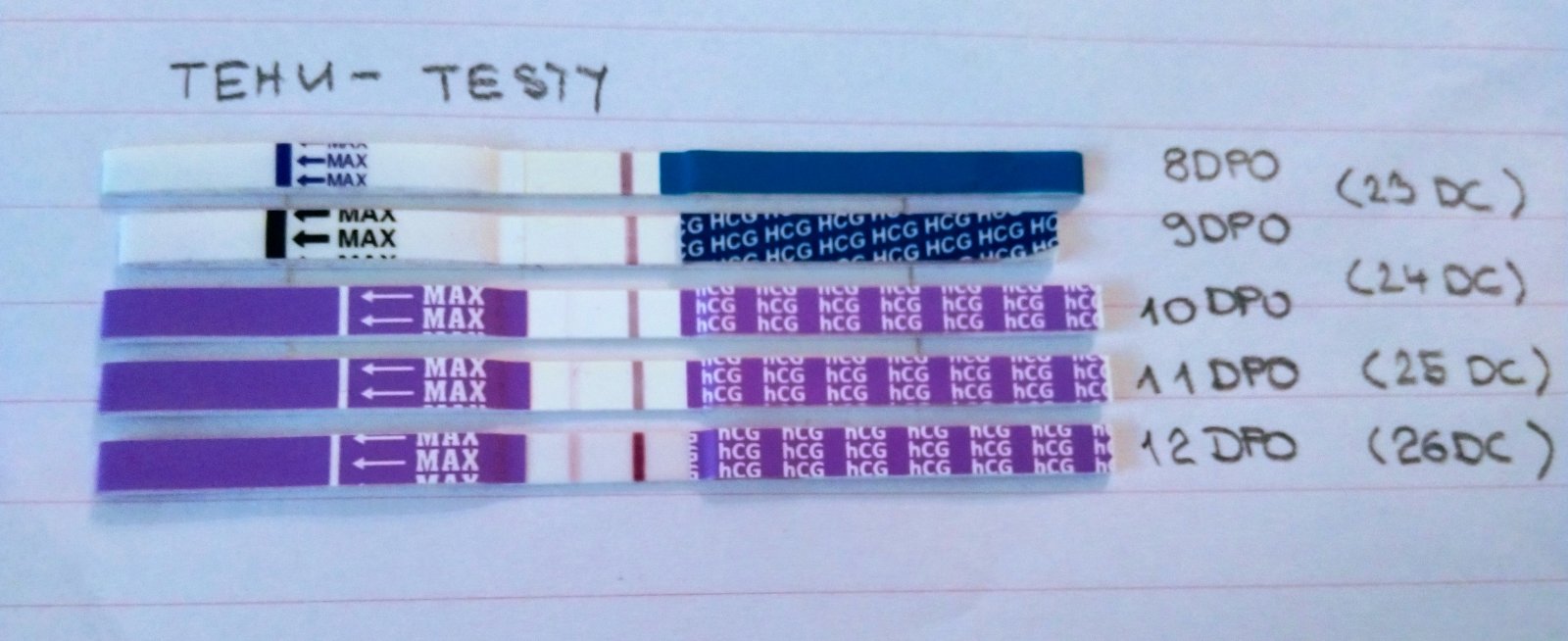 @rebecca999 pri prvom tehu som mala neviem ktorý deň take zvláštne ruzovkaste spinenie, take vlasocnice a tom bielom výroku a odvtedy stále len ten výtok a to mi prišlo divne. Jeden deň som mala hrozne kŕče a chodila som stále ma záchod že kedy sa pusti ms a nič. Tak na další deň som večer až neviem z akého dôvodu spravila test a boli úplne krásne čiarky, to bol 26dc a netuším koľko bolo dni po ovu, vtedy som to vôbec nesledovala.