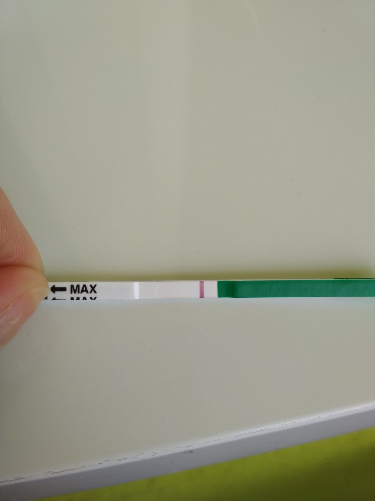 Kočky, nepatrím medzi naháňačov duchov, ale toto mi ukázal dnes mamatest. Fotka je mierne stmavená, lebo odfotenú čiarku až tak nevidno, ale voľným okom je asi takáto. Trosku zastrajkoval, vidieť tam akoby obliate, to je v pohode. Okrem toho je tam ale čiarka slabá. Vyzerá byt ako čiarka či kanalik? Na pepine je len jedna čiarka. Viem, že testovať budem musieť znova, ale vy tu duchom celkom rozumiete, tak len by ma zaujímal vas názor 🙂 Dnes mam dostať, ale par dni mi býva zle presne tak, ako mi bývalo pri prvých dvoch deťoch na začiatku tehotenstva.