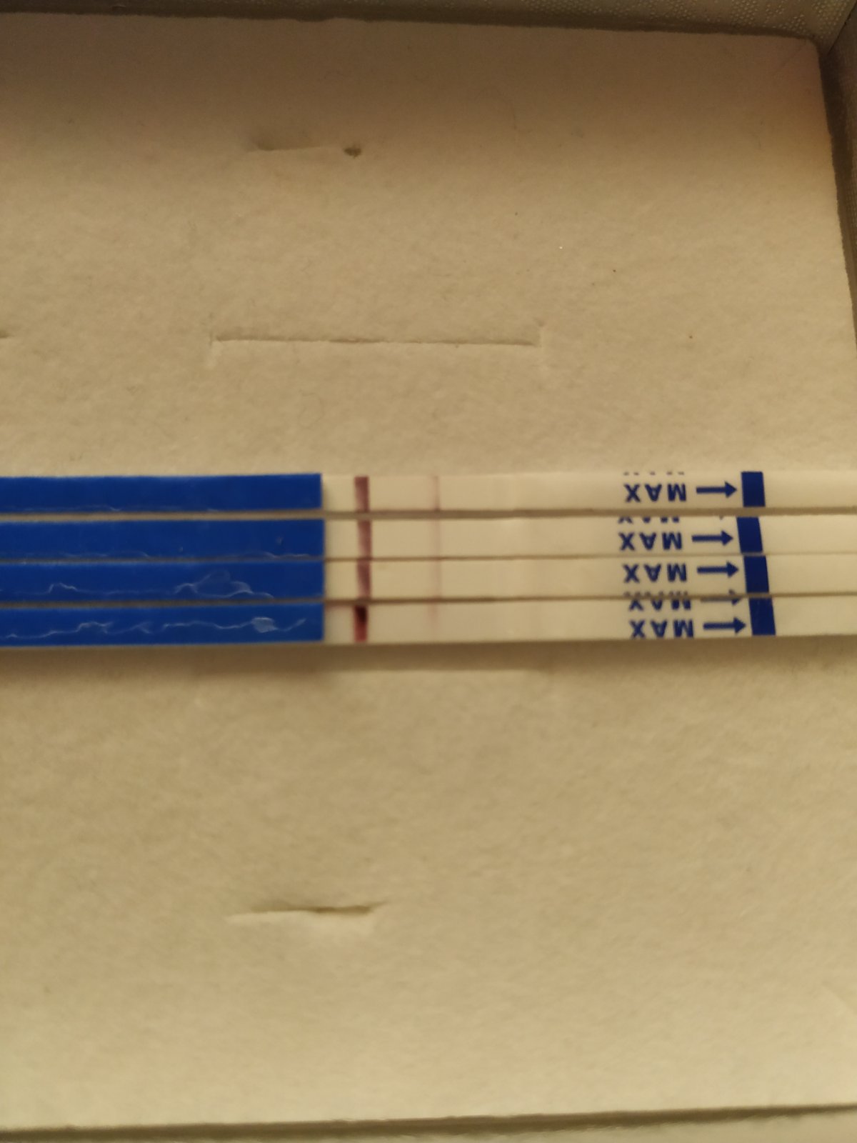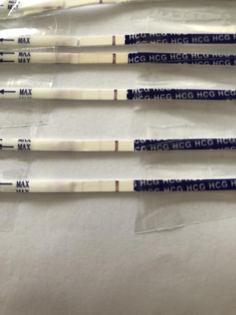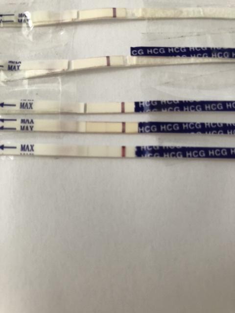 Dobre ranko,tak uz ozaj neviem ci mozu takto falosne duchovat. Co poviete. Som len 5 den po vklade blastocysty. Jeden gynekolog pisal ze mozne to je mat tak skoro poz.test. Prvy je len kontrola ze ci mam este hcg z injekcie(este bolo)druhy bol na druhy den ten bol uz biely takze injecia bola uz prec. Potom tie dva su zo vcera jeden je hned rano tam neni dobre vidno a druhy neskor a ten posledny je dnes z prveho mocu. Tak co myslite?