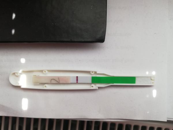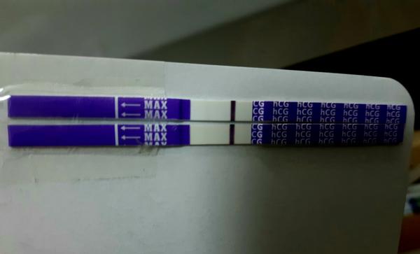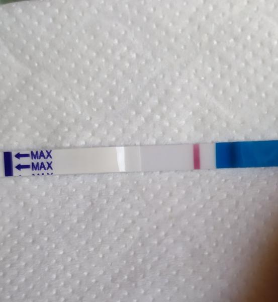 Dnes som tiež nevydržala a urobila test. Je z ranného moču (prvý je z poobedneho, vtedy mi viac ukazuje). Len som ho ocikala aj ďalej ako bola značka Max tak je trochu žltý a slabšie vidno čiarku 🤔