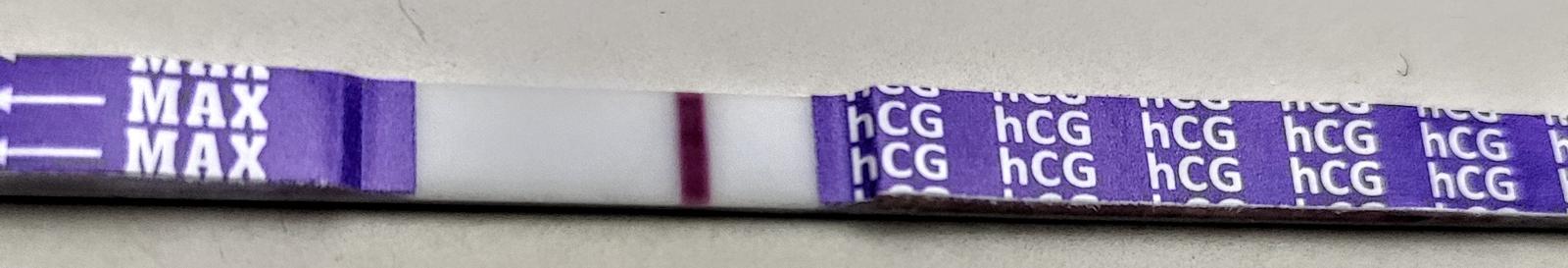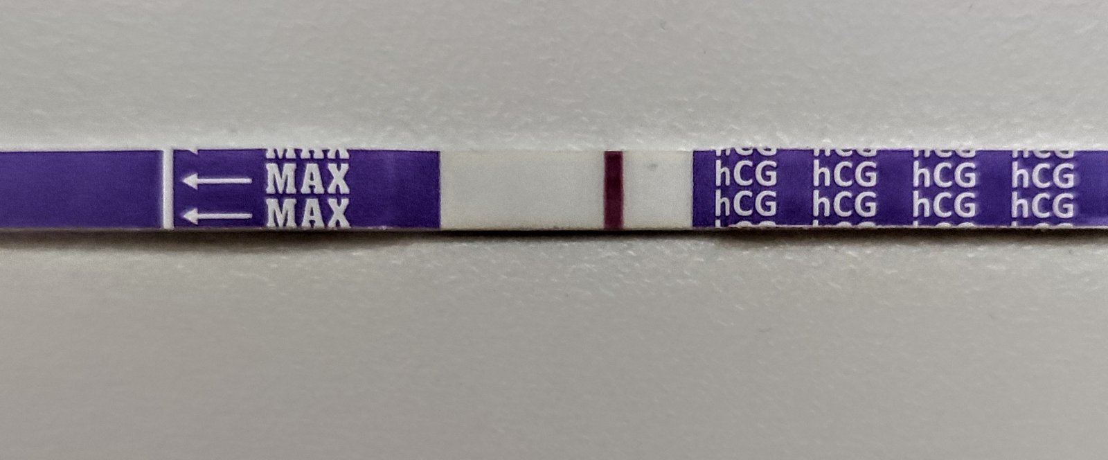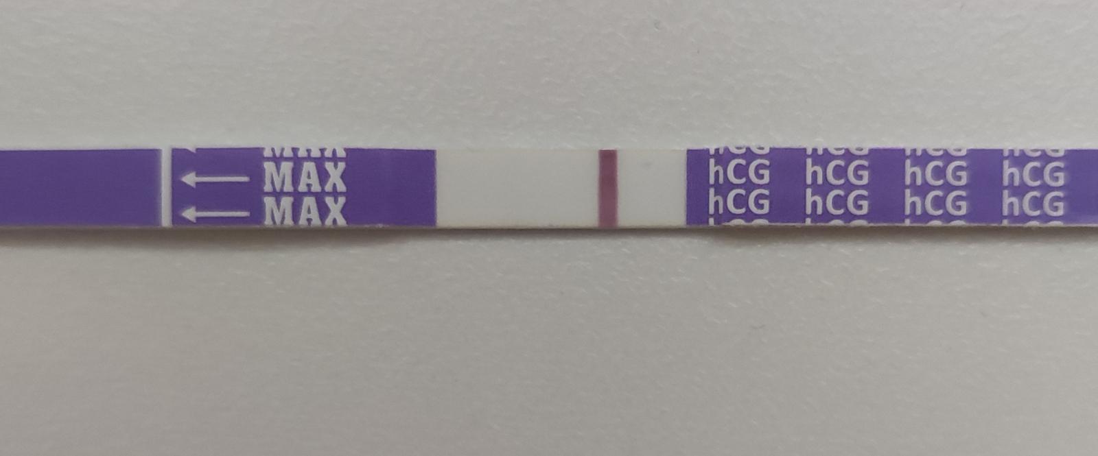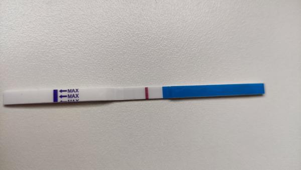 Dnes ráno som si urobila Mamatest, už nemám drmax testy doma. A asi do minúty sa tam objavila ale taká slabá čiarka, fakt úplný duch ale ružový. Nemôžem to za boha odfotiť poriadne iba takto keď dám filter. 🙄