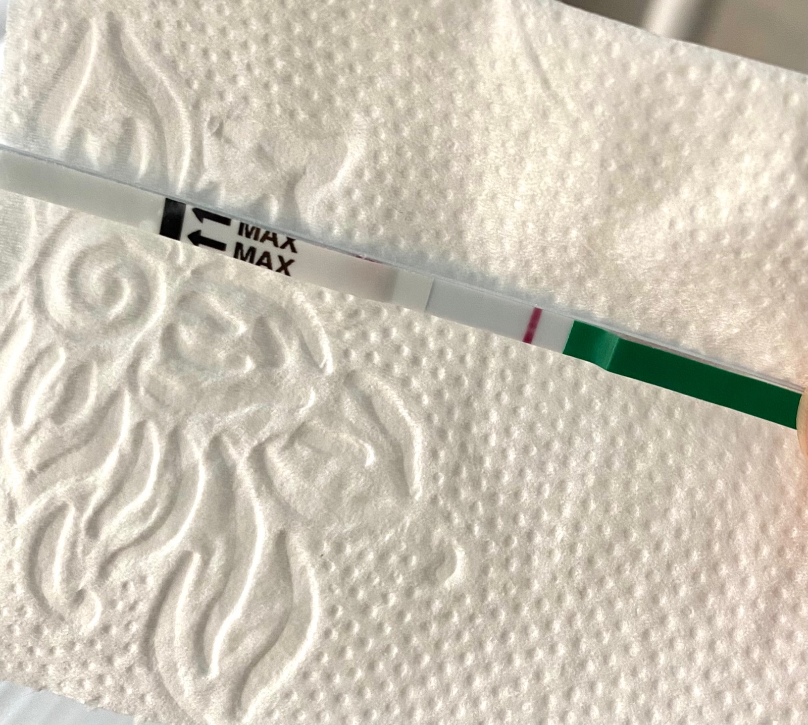 @mamazuk nakoniec som si kupila Pepino, lebo som sla okolo DMky a Clearblue, Maxa som nemala po ceste. Bola som u lekara, tak zial vratil sa mi ten zapal. Dal mi dalsie ATB, mal dost pacientiek, tak som s nim nechcela teoretizivat. Ale lekarnicka vravela, ze v prvych tyzdnoch tehotenstva ich mozem v pohode uzivat, ze ona v strede tehotenstva uzivala ovela silnejsie. Hlavne, aby mi odisiel ten zapal. Robila som si teraz zatial ten Pepino, vysiel takto. Nazivo tam cosi vidno, ale ci to nie je sive, neviem posudit 😭 Skusim este o dva dni, ale asi skor nic no … 🤷‍♀️