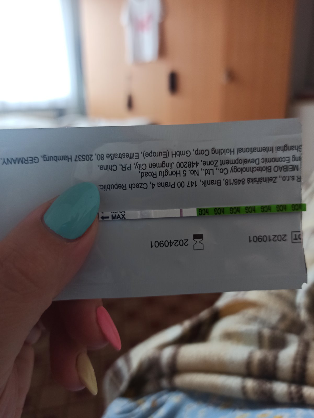 Po pôrodoch mávam dosť krátky cyklus a nechranili sme sa na 9. a 10. deň cyklu. Dosť cítim bolesť v čase ovulácie, a tá bola na ten 9DC. Dnes som neodolala a otestovala sa. Mala som doma len Pepino testy a viem, že tie sú všelijaké. Ale potrebujem sa s týmto podeliť. Test vyzerá takto. Dnes som 20DC na 25DC zvykne prísť MS. Čo na to poviete.