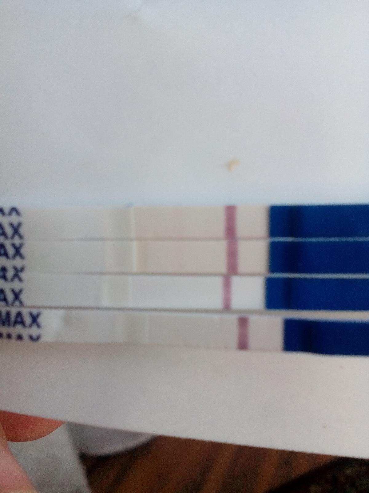toto sú pepino test vv sobotu som si urobila 2 na obed a večer ale ako keď si lupou hľadala tak taký akoby tieň pod povrchom si si všimla ale fakt lupou, spodný je zo včera rána to som si myuslela že kanálik ale nedalo mi to tak som skúsila dnes ráno -vrchný a totoť sa ukázalo, ako keď spojím ich všetky 4 tak ten dnešný je viditeľne najtmavší.