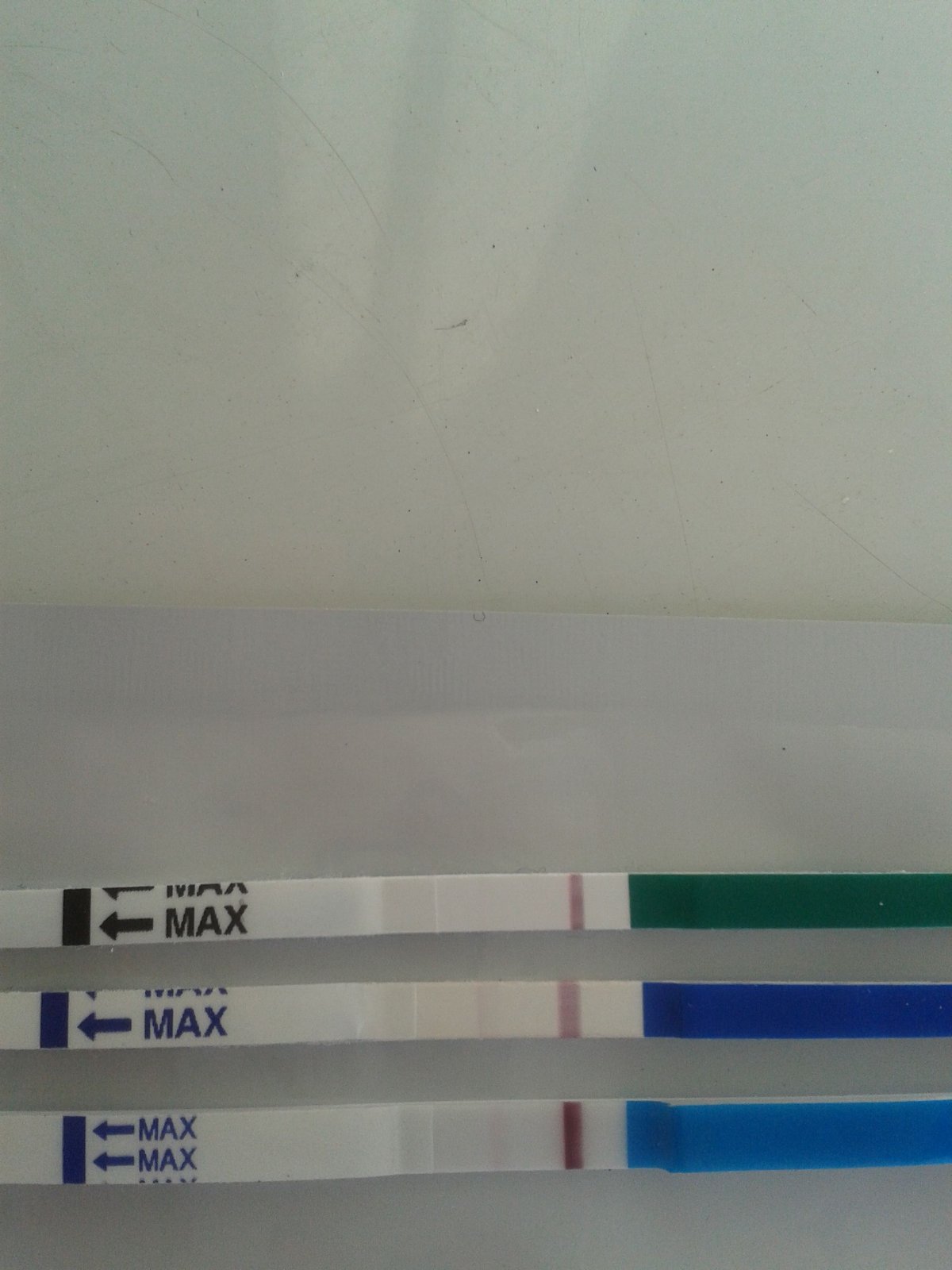 ahojte, co si myslite? neviem ci je to dobre vidno, ale na druhom a tretom je vidno slabe ciarky. mrcha meska 4 dni co nikdy doteraz nemeskala. co je zvlastne, ze nemam ziadne priznaky, praveze sa citim dobre a aj prsia ktore ma vzdy boleli pred mrchou aj tyzden,tak teraz ma vobec nebolia. mate niektora takuto skusenost a boli ste v tom?
