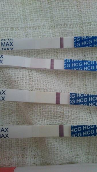 @katka.gzd ten vrchny je robeny ako prvy vo stvrtok na obed a druhy je robeny na druhy deň ráno a tam to je take rozmazane tak som nevedela určiť či je pozitivny alebo nie ale kamaratky povedali keby bol negativny tak by to poličko bolo uplne biele no a tie dva dalšie som robila na dalši deň...prve testy su woman secret baby a tie dalšie dva su rapidclear