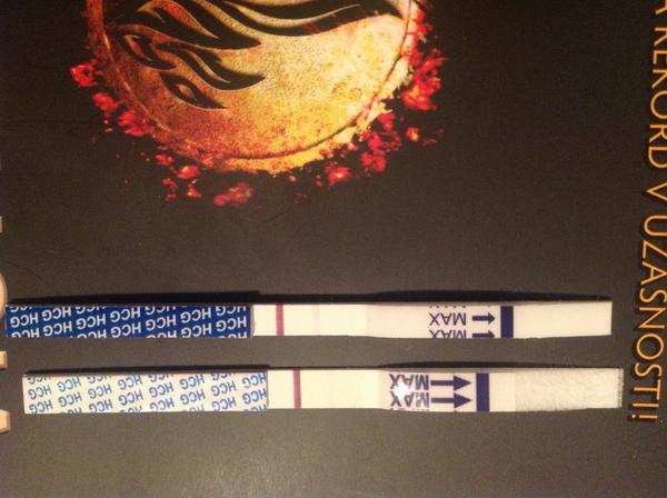 A to na tych fotkach to zle vidno a v skutocnosti je to silnejsie 🙂 a aj hned po namoceni sa robila ciarka nie ze az po niekolkych minutach 🙂 kupila som si viac testov a aj digitalny a rano si ho planujem urobit a ak aj digitalny bude pozitivny pojdem zajtra na krv k lekarovi 🙂 jooj keby to uz bolo 100% 🙂 strasne sa tesime