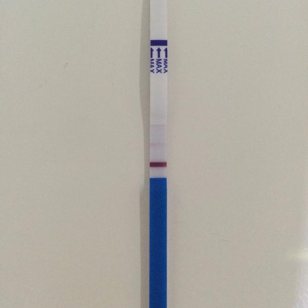 Čo poviete na toto? Neviem, či až tak veľmi tú čiarku tam chcem vidieť, že ju vidím len ja, alebo tam ozaj niečo je? Neviete náhodou, kebyže som išla na krvné testy, tak ako dlho by som mala byť tehotná, aby mi to vlastne lekárka mohla aj potvrdiť? Môj manžel má v stredu narodeniny, to by bol pre neho najkrajší darček..Ste zlatééé, že ste mi odpovedali s tými testami, skúsim aj iné, ako tento 🙂