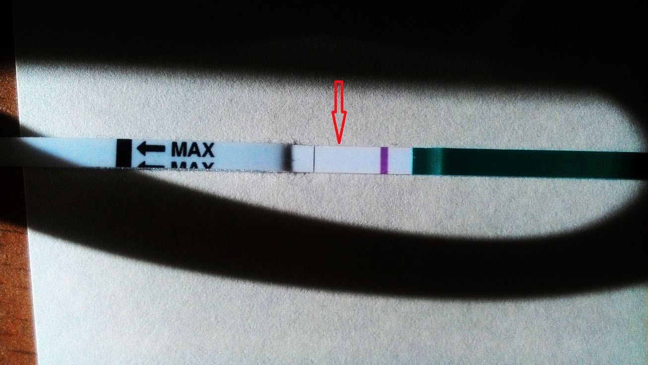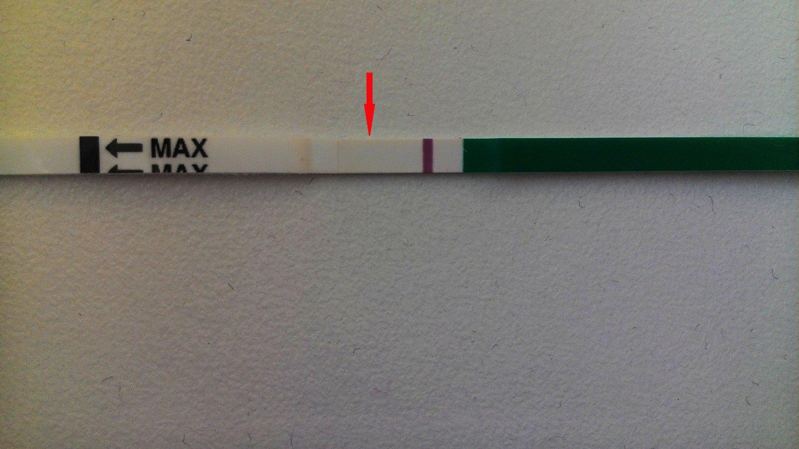 Vidíte, prosím, niečo na tom mojom nešťastnom teste? Netuším, či niečo na fotke vidno, na živo vidím zo vštkých strán, ale sama neviem, či je to kanálik alebo čo, test je už suchý. Je to pepino, netuším, ktorý dpo som, pretože z grafu, ktorý som si robila to neviem vyčítať. Ani teploty mi nepasujú, ani hlien a najhoršie je, že som začala špiniť - krvácať, čo som doteraz nikdy pred mrchou nemala. Tak som skúsila dnes test, ale nie je z ranného moču - nepodarilo sa.