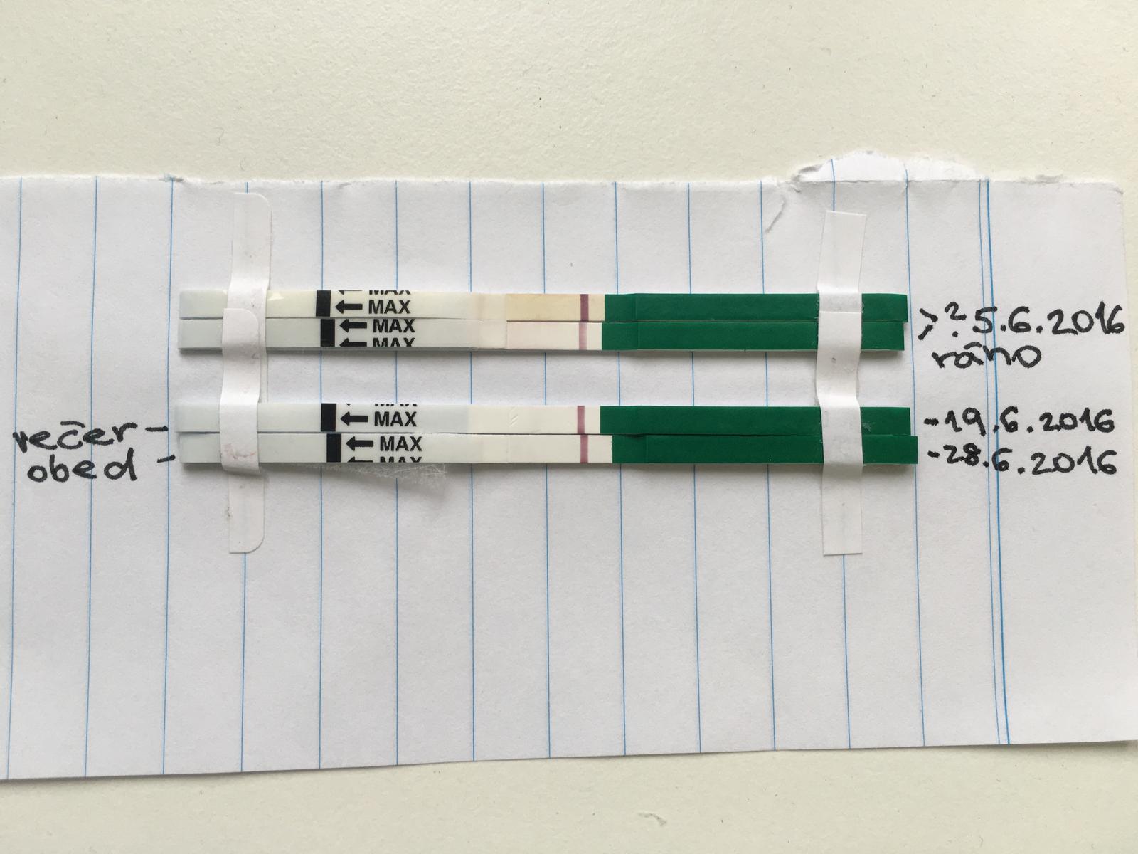 Ahojte,chcela by som sa spýtať ako vidíte tieto testy?😊Posledný pohlavný styk som mala ešte koncom mája (ak sa to ním vôbec dá nazvať,pretože priateľ bol vo mne nie dlhšie ako 5sekúnd aj to s prezervatívom,nepohol sa a tiež ani nevyvrcholil vo mne) a odvtedy som mala normálne dvakrát menštruáciu.Teraz čakám na tretiu odvtedy (nemešká zatiaľ,pretože som len 24DC a mávam tak 26-29dní cyklus),aj ovulačné testy som si robila čisto iba pre zaujímavosť (pozitívny ovulačný test bol na 12DC) a odvtedy všetko negatívne.Tak a otázka,či môžem byť napriek tomu tehotná? Prvý test (nie hneď ten horný,ale ten pod ním je reálne robený toho 5.6.,len keď som to fotila som nevedela presne,ktorý to bol,preto takto dva pri sebe s otáznikom a po limite,resp viac ako hodine sa tam zjavila čiarka-keď to uschlo) je robený ráno a potencionálne to vychádza na 7tt,druhý test je robený o dva týždne a na fotke sa zdá,že tam čosi je,ale v skutočnosti tam nič nie je a tretí test som robila dneska (potencionálne v 10tt) a už absolútne nič tam nebolo.Ten prvý je robený z ranného moču,druhý z večerného,keď som robila aj ovulačný a tretí z doobedňajšieho.Pýtam sa,pretože začínam už panikáriť a cítiť sa divne celkovo,len či to nemám z toľkých stresov😔