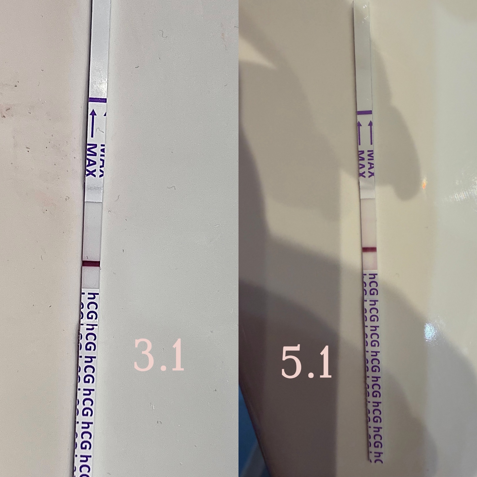@anonym_autor rozumiem čo vidíš, ale podľa mňa ak by toho 3.1 bola čiarka aká bola tak 5.1 by už mala byť podstatne silnejšia. Mne príde rovnaká. Ja som mala jeden deň slabú čiarku a na druhý deň jasne viditelnú červenú. Nedá sa povedať, že je to pozitívny test, niekedy tie testy takto ukazujú.