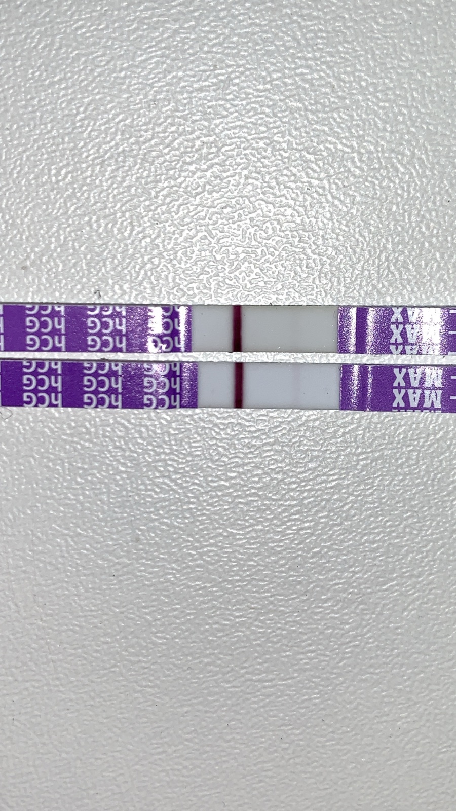 @paulina291 taktiež súhlasím. Ja som mala takúto takmer neviditeľnú čiarku v pondelok (prvá fotka v príspevku) a dnes (deň, kedy mala prísť MS) už takýto test (foto). Pričom podľa dní nám to sedí cca rovnako.