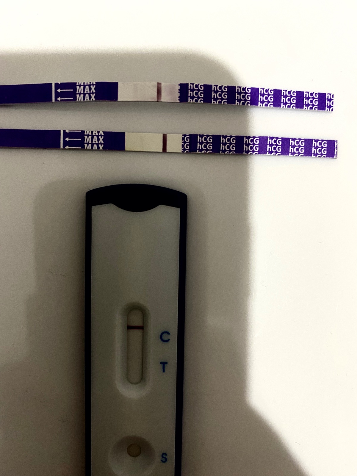 Ahojte 9dpo poobede som si robila mama test hneď tam boli dve čiarky bola síce slabšia ale videl ju tam aj muž… ráno mama test slabšia čiarka keď pozerám po 3 dňoch na tie testy čiarku tam stále vidieť ale slabšiu vid foto dole.