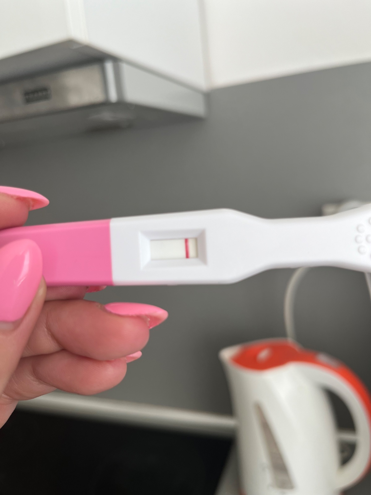 Za mňa je to negatívny test. Ja tam nevidím ani náznak čiarky. Potom dajte foto, keď bude meškať.