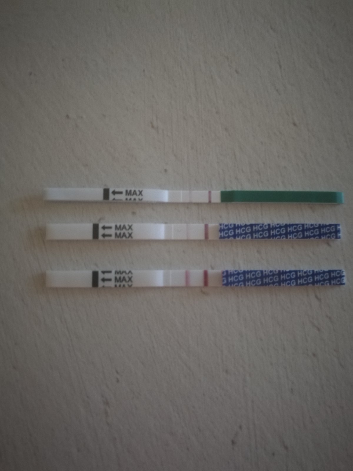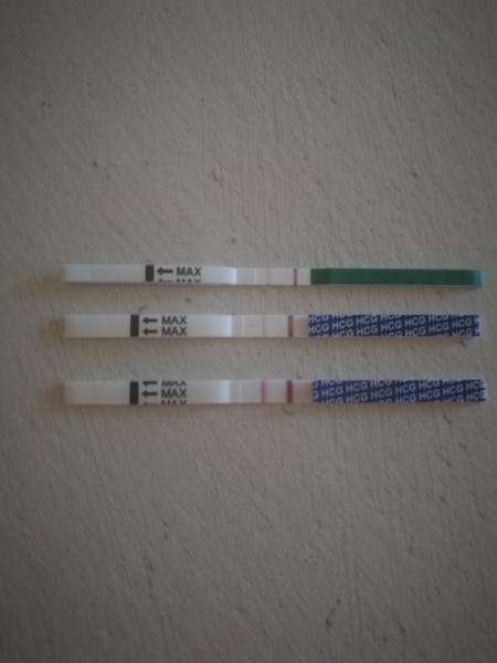 Ahojte testy su robené 10dpo a 11dpo vrchné dva su z 10dpo ale na strednom vidím druhú slabulinku čiarku. Vidite ju tiež? Ci je to len chybný test alebo len kanalik keďže spodny robeny 11dpo je len s jednou ciarkou. Pridavam aj upravenú foto kedze na tej ju vidim lepsie inak na zivo ju vidiet ako na upravenej. Za kazdu odpoveď ďakujem