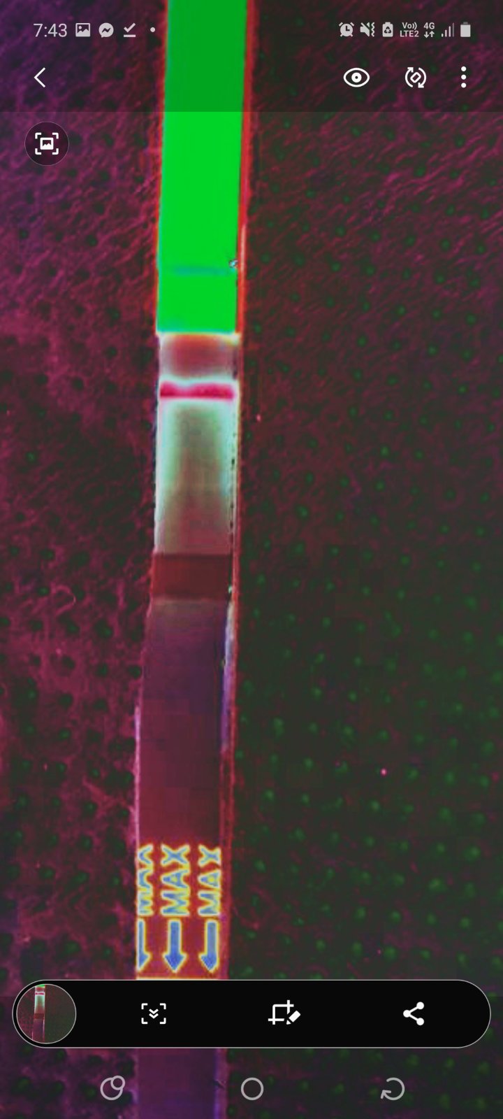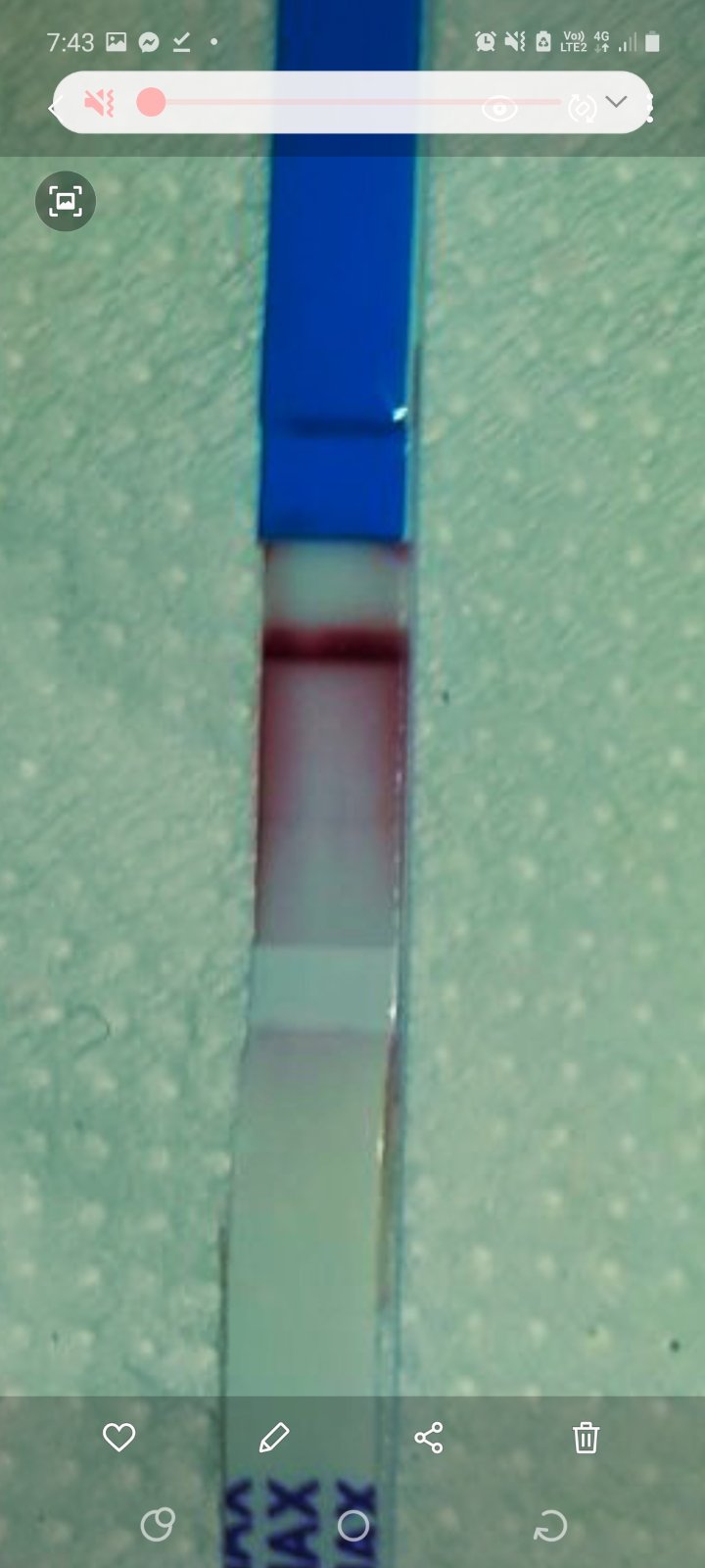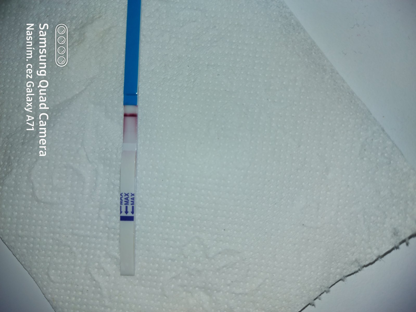 Poslala som rano kamoske fotku testu a teraz ako mi odpisala som si na nom vsimla ako by druhu ciarku. Viem ze je to kravina lebo by uz musela byt silna ale vidis ju tam?