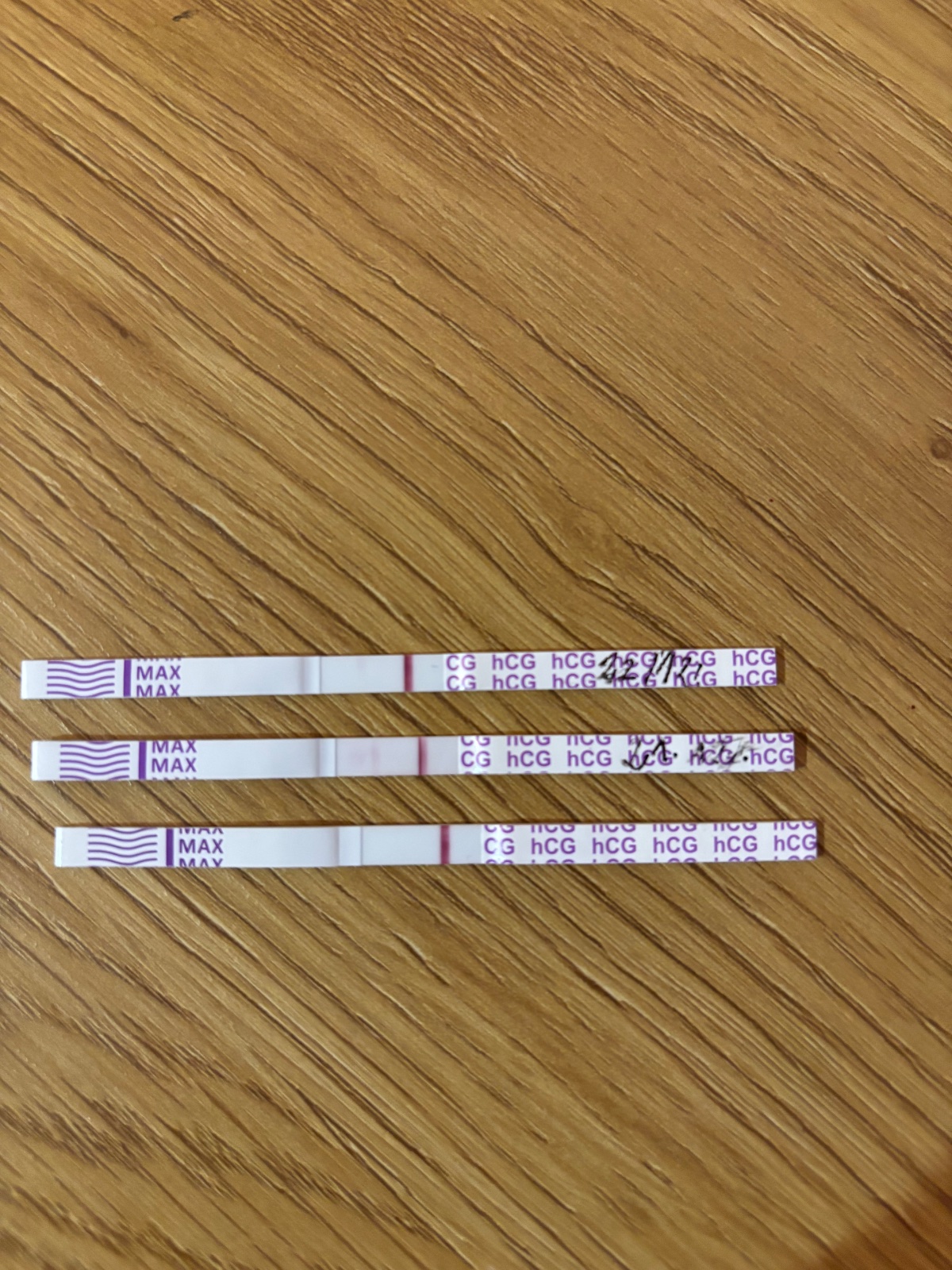 Prve 2 su klasike pozitivne testy na zaciatku tehotenstva,take sme mali mnohe. Posledny nevidim nic