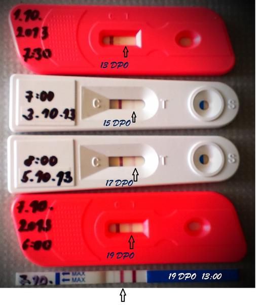 Ahojte. Ja som si robila testíky dva odlišné 21 februára a vyšli pozitívne obidva.Ale akože druhá čiarka bola slabunká na obidvoch.Potom som si spravila o 3 dni zase dva testy a vyšli negatívne. Tak neviem čo si mám o tom myslieť.Príznaky som mala pred tým ,že som troška špinila. a pokúšali sme sa prvý krát tento mesiac o bábo a potom o pár dní po styku som začala špiniť.Trvalo to len 5 dní.a až potom som si spravila tie testy ,čo mi ukázali najprv dve čiarky...Teraz mám akože dostať menzes vo štvrtok.Dnes ráno ma začalo ťahať v podbrušku ako pri menzese.Myslela som si ,že dostanem,ale nič.Mala som také aj krče presne ako pri menzese.Trvali pár minut a samé to prešlo.Potom som aj čítala o tomto ,že to može byť to tehotenstvo a takéto príznaky sú.Moja mamina mala takéto tehotenstvo ,že ju bolelo bruško ako pri menzese.Tak uvidím no 🙂 Držte palce.