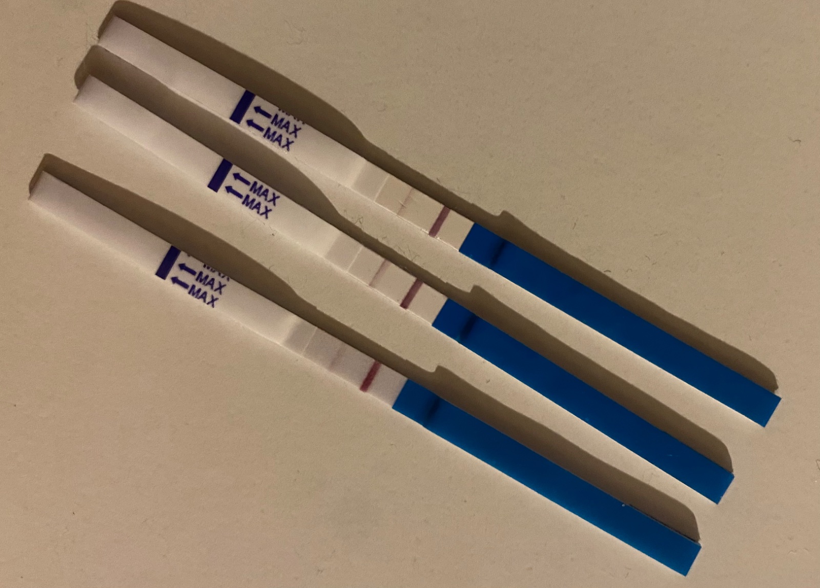 Ahojte, čo si myslíte o testoch dole? Sú robené zhora-nadol-pondelok, streda a dnes, teda piatok. Vyzerá, že klesá HCG. Je to biochemické tehotenstvo, alebo potrat? MS mala prísť 31.03., ovulácia podľa testov bola asi na 12. deň cyklu 15.03. … neviem čo si myslieť. Včera som mala aj tmavohnedý až tmavočervený slizký výtok. Žiadne bolesti… som 3,5 mesiaca po spontánnom potrate v 9tt. Ja neviem ako zvládnem túto ďalšiu stratu… včera som si sama večer nasadila utrogestan 1tbl vaginálne a ráno znova. Doobeda sa chystám zavolať lekárovi… MS neprichádza a ja neviem čo to vlastne má všetko znamenať a čo mám robiť…