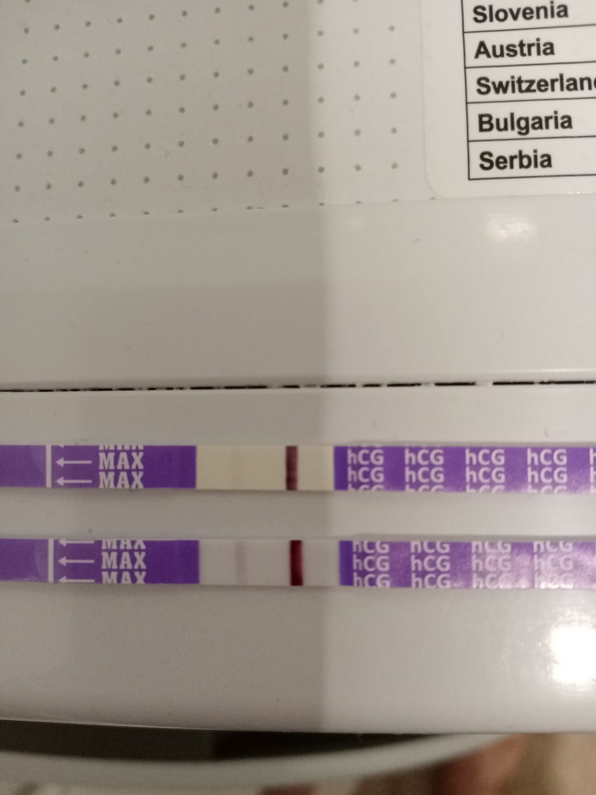 Pekny vecer prajem. Chcela by som sa spytat, ake mate skusenosti s mamatestom (2ks v baleni)? Preto sa pytam, lebo ked som zostala tehotna tak mi mamatest potvrdil tehotenstvo, lenze slabo vyditelna ciarka bola (bohuzial skoncilo potratom) Zajtra by som mala dostat ms tak som isla okolo lekarne kupila som si test, mali len mamatest. Prilozim foto. Slabsi robeny dnes o 17:00 a tmavsi o 20:20. Prosim pozrite sa mi, lebo beriem aj kvapky Gynex a teraz neviem ci si mam dat teraz alebo radsej vynechat. Dakujem.