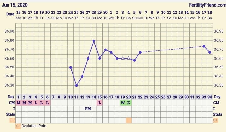 Styk som s manželom mala len raz v tomto mesiaci 27.6. v noci. Je zaznaceny v tabuľke ako PM.