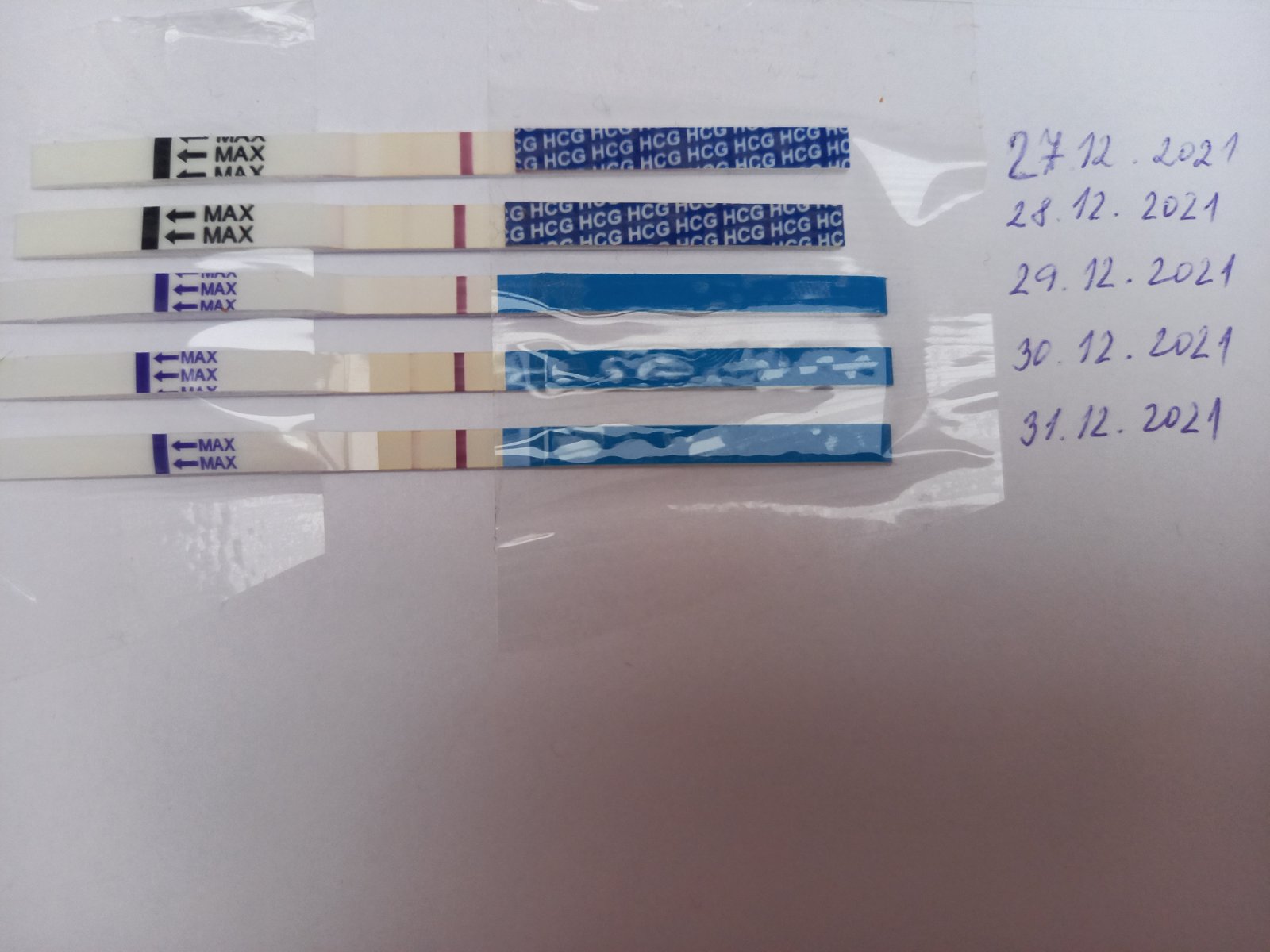 @simbatko lebo už som mala pred par mesiacmi a ciarka nejak nesilnela a potom som musela vysadiť utrogestan, lebo aj z krvi som mala veľmi nízke hcg q do par dni som vykrvacala. No a bojím sa, že aj teraz sú tie čiarky slabé a nejak nesilneju. I keď je pravda, že si robím testy každý deň.