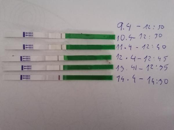 a tiez som robila od 7dc teraz ako ty a mala som ich take. az 12dc ukazalo peknu ciarku ale stale slabsiu ako kontrolnu