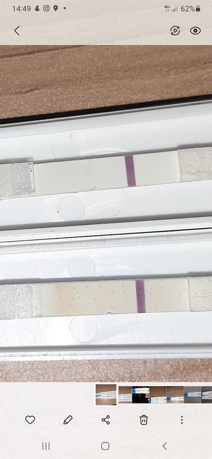 @banderaska29 nemohla som vydržať nakoľko príznaky mám len nejde mi do hlavy prečo jedny testy ukazujú a druhe nie tieto dva kazetove na druhej fotke sú robene horný 17.7. A spodný 19.7. A tieto dva tyčinkove sú robene dnes ten vrchný ráno a ten druhy pred hodinou. Mam pocit že sa tam niečo črtá len nechcem byť sklamana