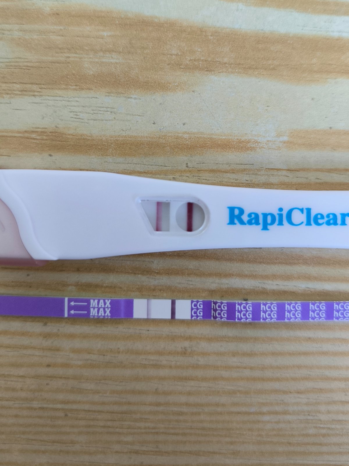 @baby027 no ja sa dozviem za týždeň ako som na tom, alebo ak sa niečo dovtedy nezvrtne a nepríde MS. Veľmi v kútiku duše dúfam, že to dopadne dobre, ale tie prsia ma moc nebolia a čiarka na teste je stále o niečo slabšia ako kontrolná. Ale zase hovorím si že vtedy, keď to dopadlo zle, som mala ukážové testy a aj prsia ma boleli dost celkom a aj tak to dopadlo zle, tak musím len veriť. Toto sú tie posledne robené testy, horný je z dnešku a dolny zo včera. 5 dní od 1. pozitívneho testu a stále nie sú rovnako sfarbené. Skúsim ešte v piatok posledný krát a keď to nezosilnie tak neviem no.