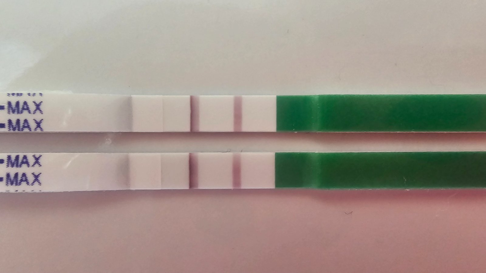 @krasneleto toto sú tie dva testy z blízka. Takže keď sú takéto sú negatívne? Tým pádom som si ich aj predošlé mesiace zle vysvetľovala, myslela som si, že keď sú takéto tak sú už pozitívne a vždy mi deň potom vyšiel negatívny test so slabou druhou čiarkou. Viem, že ovulácia nemôže trvať tri dni, preto som položila túto otázku.