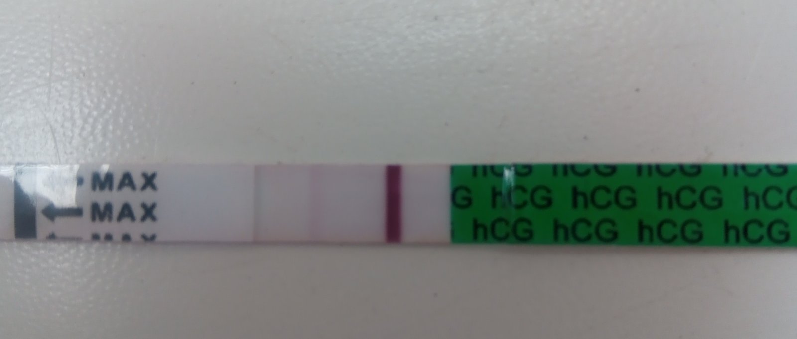 Spravila som si druhý test, vyšlo to úplne rovnako, ta druha slabá čiarka pod tou časťou tam. Takže idem si kúpiť dnes lepší test