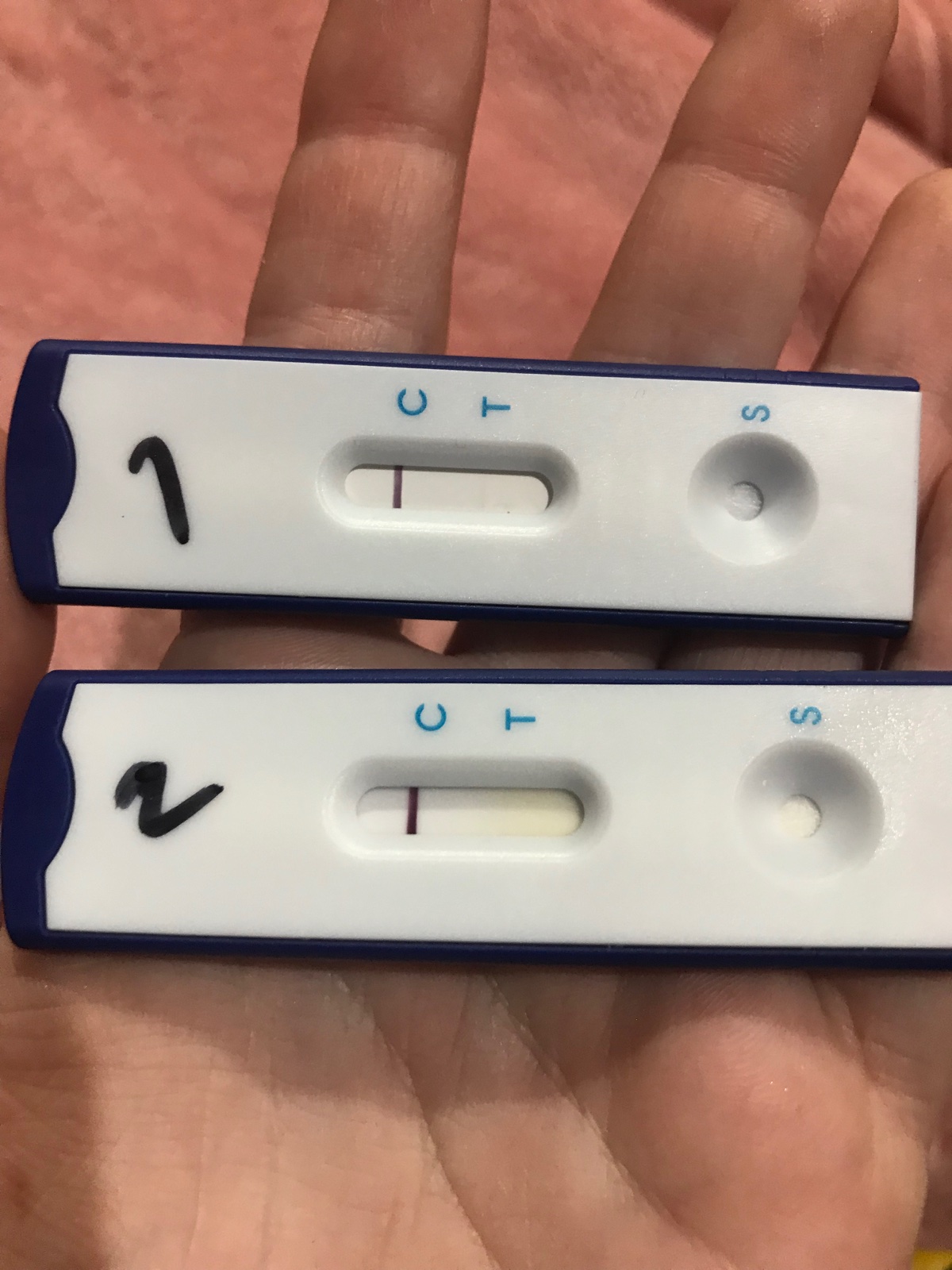 Ahojte, robila som si prvý krát tehotenský test. Meškajú mi kramy 5 dni a cítim sa tak zvláštne, myslela som že je to pms ale kramy nikde. Skusila som teda test, jeden včera poobede a druhy dnes ráno. Čiaročka na prvom taká slabá sa ukázala až dnes a vidno ju lepšie keď podsvietim pod test… a druhá akoby sa ešte črtala ale tiež ju vidno len keď podsvietim pod test. Myslite že môžem byt tehotná? Ďakujem za odpovede 🙈