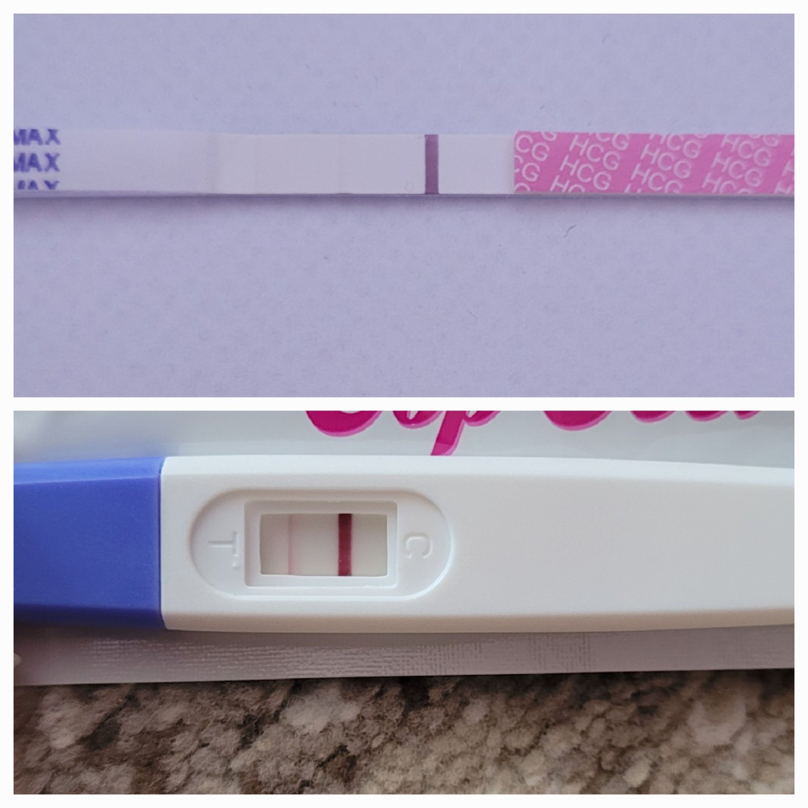 Ženy čo myslíte, je tam šanca? Totižto 24.5.som mala hcg z krvi 23, potom som v pondelok začala hrozne krvácať a išli zo mňa kusy. Po 2 dňoch sa to upravilo na normálnu ms a do 17dc som ešte špinila. Za normálnych okolností by mi ms meškala 6 dní. Prvý test je z piatku a druhý dnes ráno. Myslíte, že by to hneď mohlo vyjsť? Hádam to nemám iba v hlave 🙈