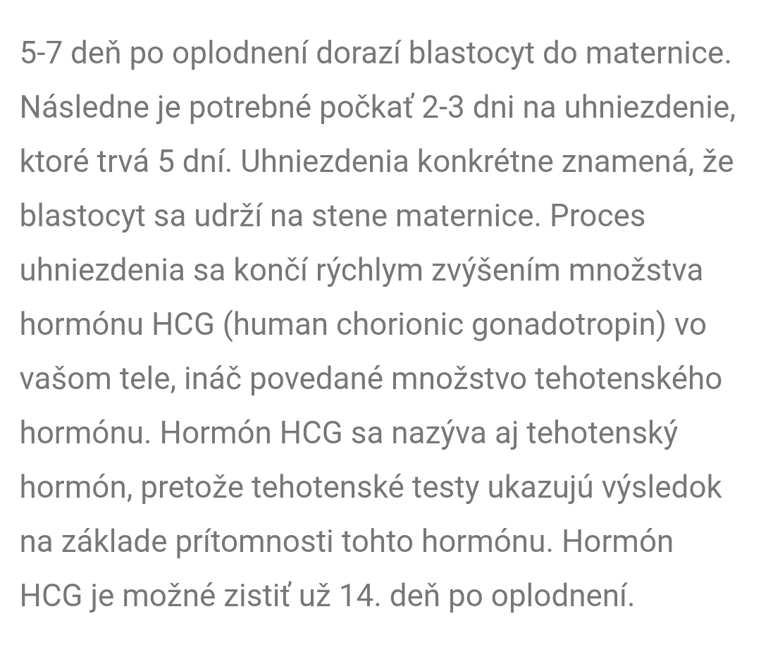 @cilka999 veru nie, lebo sem chodia ženy bez základnej znalosti biológie a tvrdia, že otehotneli 2 dni po ovulácii a 2 dni po sexe majú čiarku na tehotenskom teste. Pritom blastocysta vtedy ešte ani neprodukuje hcg, ktoré by sa dalo zachytiť. Veď ak si tehotná, ultrazvuk potvrdí, že bábo je väčšie o týždeň.