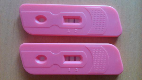 tak a teraz mi poradte...čo to môže byť...podľa včerajšej kontroly u lekára tehotná nie som...toto sú testy z dneška...ten slabší je z rána a siľnejší z obeda...lebo ak je žena tehotná mala by byť tá druhá čiarka silnejšia ráno nie?...naozaj sa takto prejavuje hormonálna porucha??? stretol sa už niekto s tým? ms mi mešká 11 dní ...