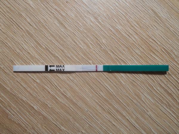 @ancovicka21a takto byva zafarbeny test, ktory je prilis nasiaknuty mocom. Nie je to urcite zabludena kriva druha ciarka kt by znamenala tehu. Toto je negativny test.