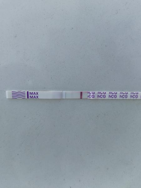 niečo malé vidím, ale stalo sa to aj mne. z 10 testov asi 6 vyšlo takýchto a normálne som dostala menštruáciu. Dnes si už test nerob. urob si zajtra ráno a pozajtra. Ak budeš tehotná, každý deň hladina hcg bude stúpať. Môžeš mať aj falošne pozitívny test ako to bolo v mojom prípade. Ak sa snažíte, držím palce ;)