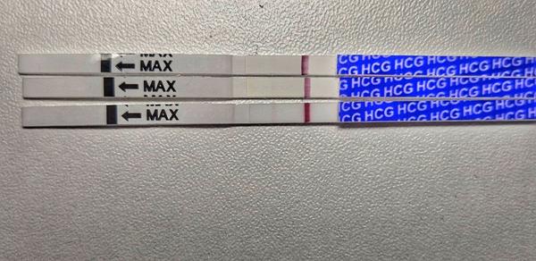 Ahojte prikladám fotku vidíte tam niečo? Včera som robila test lebo ma divno bolelo par dni podbruško. Včera mi bolo aj divno od kávy vôbec na ňu nemam chuť. Urobila som si 3 testy a na všetkých úplne slabunka čiarka. Dnes som si skúsila kúpiť inu značku že či su to náhodou neni kanáliky a znova duch ale uz trosku silnejší😳 ja by som bola taká šťastná keďže som si prešla 2 potratmi 🙏😔