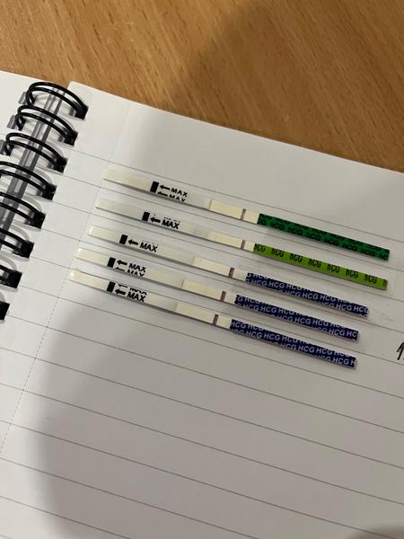 Na tom spodnom vyzerá že by niečo mohlo byť, je to z ranného moču? Určite zopakuj o 2 dni, už by to mohlo byť jasnejšie
