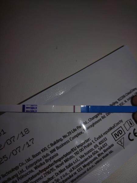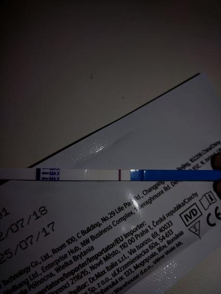 No pokial je ta carka biela,siva je test negat. Pokial tam realne vidis nazivo trosku farby, mozno sa tam nieco rysuje...sprav si test o den-dva ci bude ciarka viac vidiet
