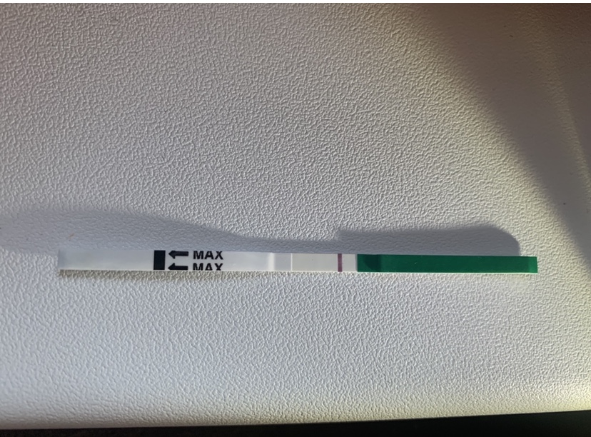 Keď sa pozriem na test tak niečo slabé vidím keď sa pozriem mimo testu na tú podložku tak vidím to výraznejšie že je tam aj niečo iné okrem tej jednej čiarky 🙂 treba urobiť zajtra z ranného moču možno bude viac viditeľné