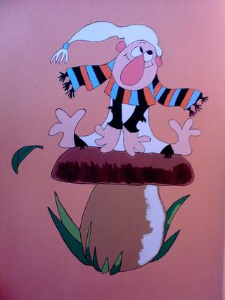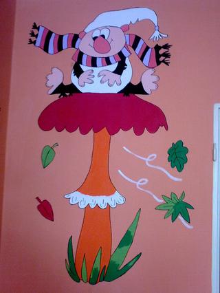 @viknat Krásné malůvky, já malovala na zeď než se narodila dcerka Křemýlka a Vochomůrky - měli jsme i krtečka, ale když jsme malovali na zeleno, tak jsme ho přemalovali a nechali tam jen křemýláka a Vochomůráka. + tam teď máme samolepky Medvídka Pů a jeho kamarády, motýlky a berušky. 🙂 Ale já teda měla koupené papírové předlohy a jen jsem to obkreslovala, malovat neumím.