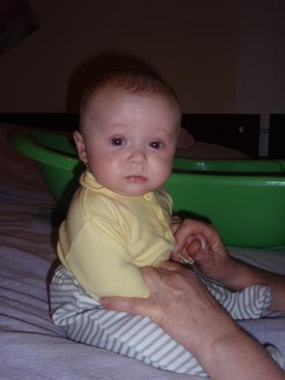 takze malicka dnes absolvovala ockovanie prevenarom.. doobedie bolo hrozne.. plakala, vzpinala sa mi na rukach, lutostivo mrnkala, tak som jej dala cipok.. potom mi spala na rukach asi dve hodiny, ale velmi nepokojne.. teraz sice je ok, hra sa s novou hracou dekou, co nam dnes prisla z uk 🙂 ale uvidime, co bude vecer.. este by som s nou rada sla von, ked je tak krasne.
